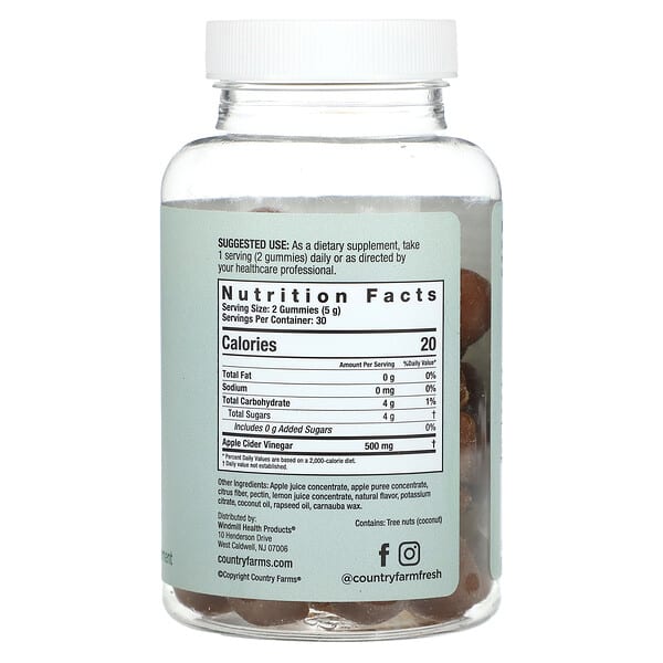 Thông tin sản phẩm Country Farms, Apple Cider Vinegar Gummies, Real Apple, 60 viên nhai
