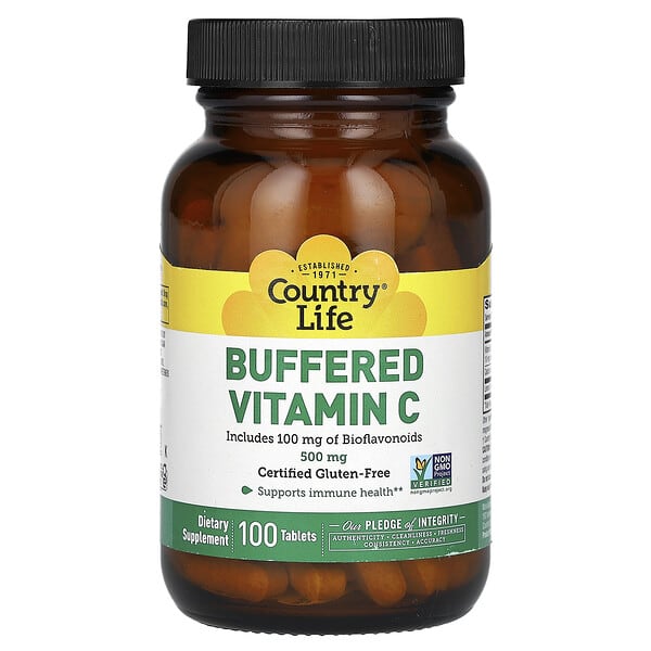 Vitamin C Buffered 500mg Country Life, tăng cường miễn dịch, nhập khẩu Mỹ, hỗ trợ sức khỏe, 100 viên., UPC: 015794070511