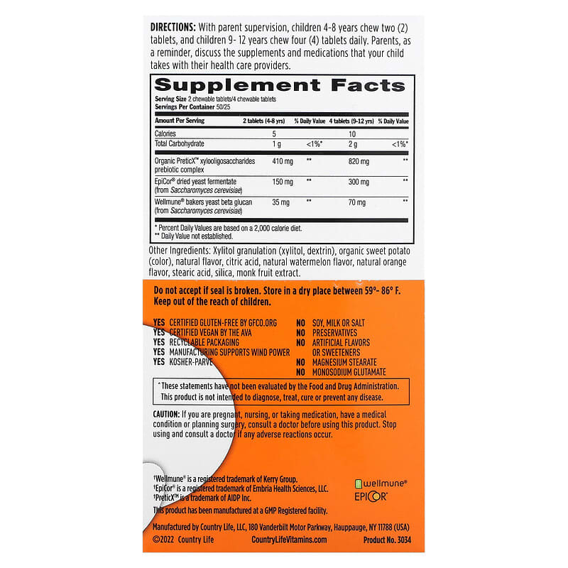 – EpiCor: 150 mg (300 mg cho trẻ 9-12 tuổi) – chiết xuất từ men Saccharomyces cerevisiae, giúp cải thiện sức khỏe miễn dịch và tiêu hóa.