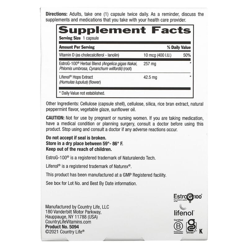 Country Life Menopause Rescue 60 Vegetarian Capsules hỗ trợ giảm triệu chứng mãn kinh, tăng cường sức khỏe phụ nữ với thành phần từ thiên nhiên 015794050940
