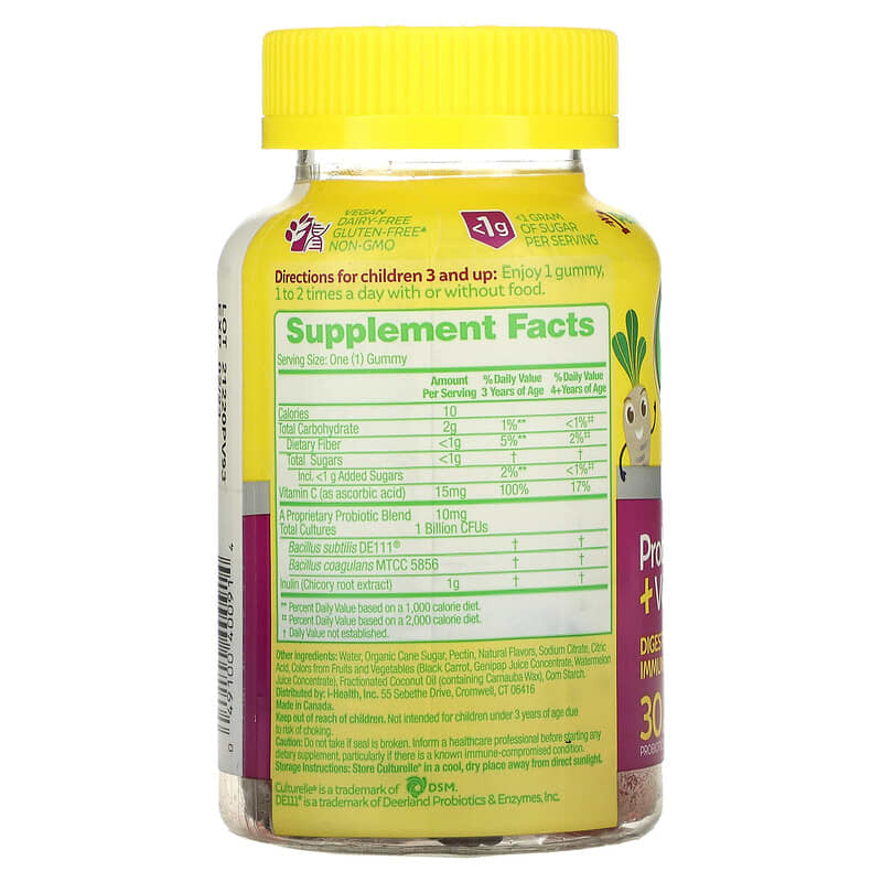 Culturelle Kids Probiotic + Veggie Fiber Gummies bao gồm các thành phần tự nhiên an toàn cho trẻ. Mỗi viên gummy chứa: