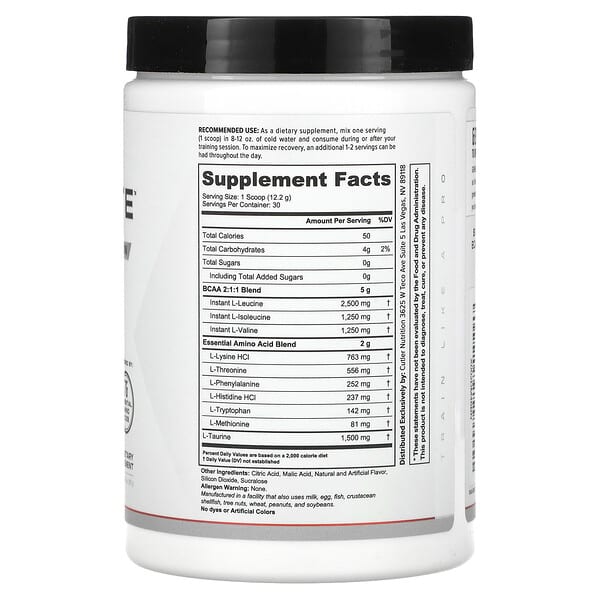 – Liều lượng: Pha 1 muỗng (12,2g) với 8-12 oz nước lạnh và uống trong hoặc sau buổi tập luyện.