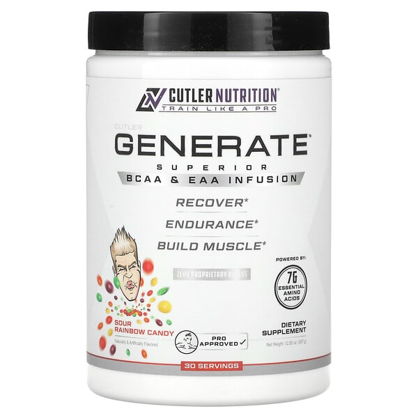 Giới thiệu sản phẩm Cutler Nutrition, Generate, Superior BCAA & EAA Infusion, Sour Rainbow Candy, 12,95 oz (367 g)