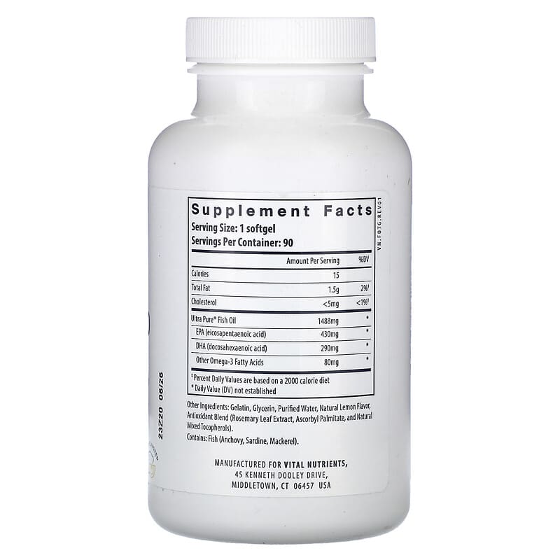 Giới thiệu sản phẩm Dầu Cá Nguyên Chất Ultra Pure 800mg, Dạng Triglyceride, Hương Chanh, 90 viên, Vital Nutrients