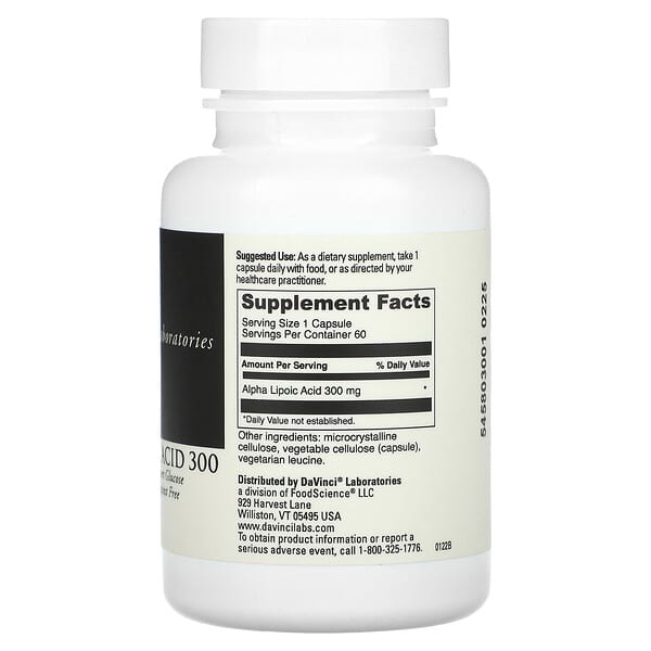 Thông tin sản phẩm DaVinci Laboratories of Vermont, Alpha Lipoic Acid 300, 60 viên