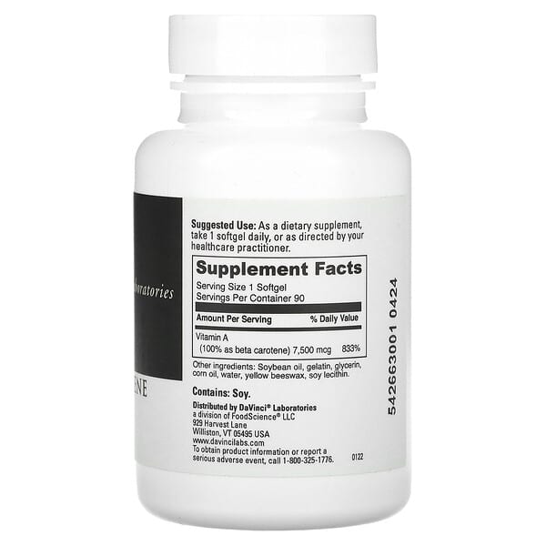 Thông tin sản phẩm DaVinci Laboratories of Vermont, Beta Carotene, 7.500 mcg, 90 Softgles
