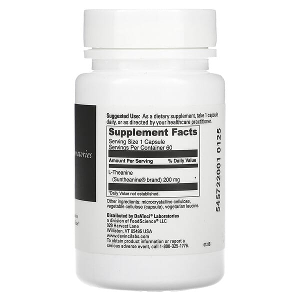 Thông tin sản phẩm DaVinci Laboratories of Vermont, L-Theanine, 200 mg, 60 viên