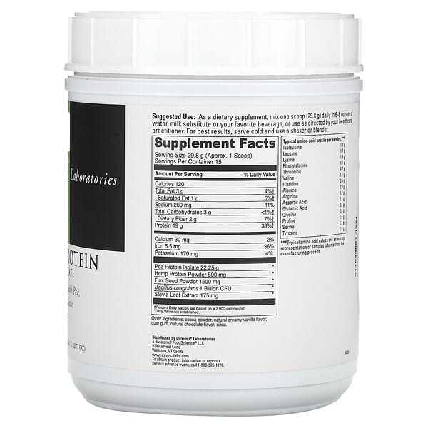 Thông tin sản phẩm DaVinci Laboratories of Vermont, Vegan Protein, Creamy Chocolate, 15,77 oz (447 g)