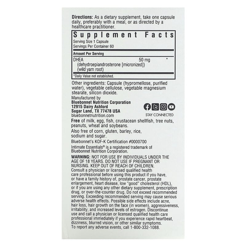 Giới thiệu sản phẩm Bluebonnet Nutrition Intimate Essentials DHEA For Him & For Her 50 mg 60 viên chay