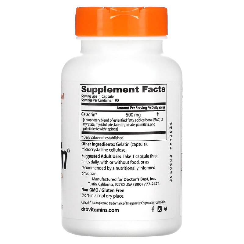 Viên uống Doctor's Best Celadrin 500 mg 90 viên hỗ trợ khớp khỏe mạnh giảm viêm đau giúp cơ thể linh hoạt sản phẩm chính hãng Doctor's Best 753950001374