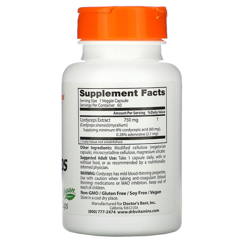 Doctor's Best Ultra Cordyceps 750 mg 60 viên hỗ trợ sức khỏe tim mạch tăng cường năng lượng sản phẩm từ thảo dược tự nhiên chất lượng cao 753950001039