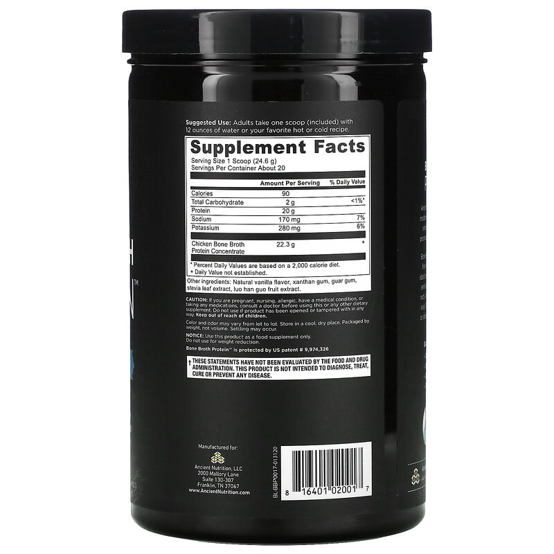 Giới thiệu sản phẩm Dr. Axe / Ancient Nutrition Bone Broth Protein Vanilla 17.4 oz (492 g)