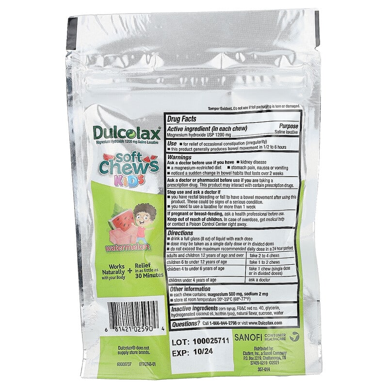Dulcolax viên nhai vị dưa hấu cho trẻ em từ 4 tuổi, hỗ trợ tiêu hóa, dễ sử dụng, 15 viên., UPC 681421025904