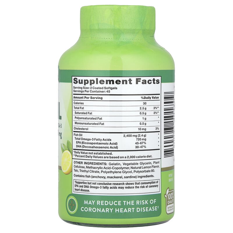 Omega-3 là một trong những loại axit béo thiết yếu mà cơ thể không thể tự tổng hợp, vì vậy việc bổ sung từ thực phẩm hoặc thực phẩm chức năng là rất quan trọng. Nature’s Truth Fish Oil Lemon 90 Coated Softgels là một sản phẩm bổ sung omega-3 chất lượng cao, được chiết xuất từ dầu cá, giúp hỗ trợ sức khỏe tim mạch và cung cấp nhiều lợi ích dinh dưỡng khác.