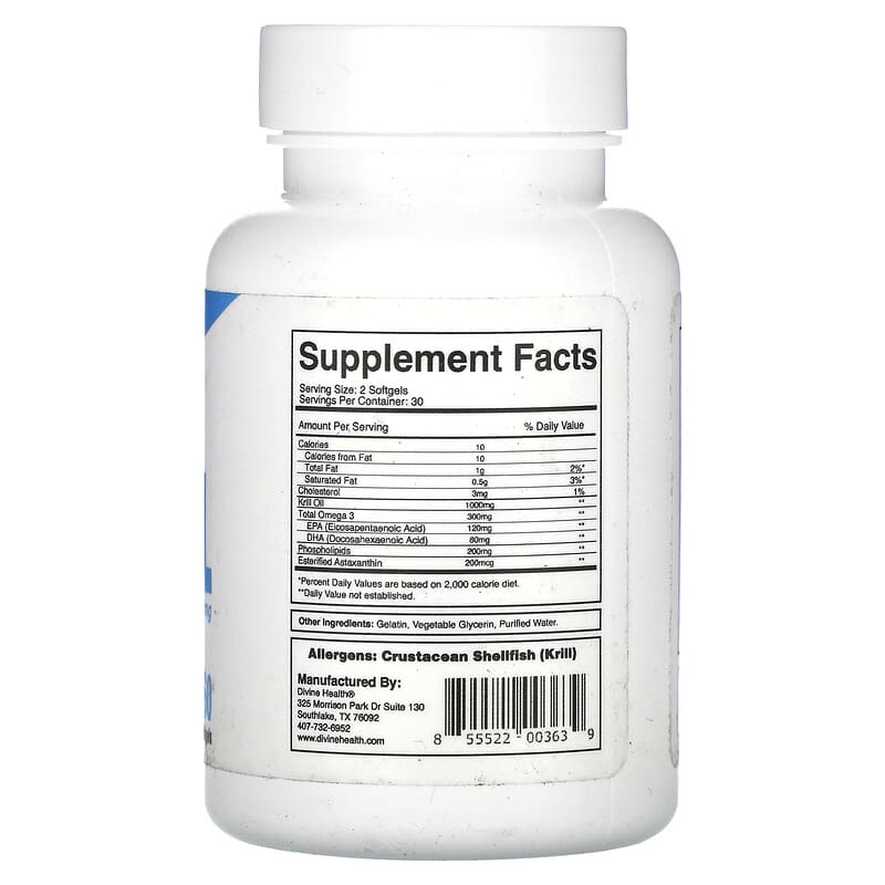 Divine Health Dr. Colbert M.D. Living Krill 1.000 mg chứa các thành phần chính như sau: