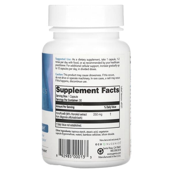 – HonoPure® (98% Honokiol chiết xuất từ vỏ cây Magnolia Officinalis): 250 mg trong mỗi viên, là thành phần chính mang lại công dụng nổi bật cho sản phẩm.