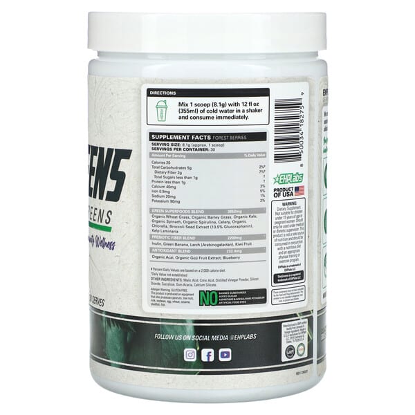 Thông tin sản phẩm EHPlabs, OxyGreens, Daily Super Greens, Forest Berries, 8,5 oz (243 g)