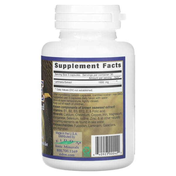 Eidon Ionic Minerals BSE chiết xuất tảo nâu 500mg, hỗ trợ sức khỏe, chính hãng nhập khẩu từ Mỹ, 90 viên., UPC: 640923000420
