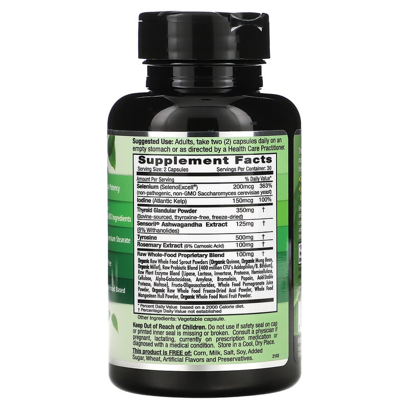 Viên nang Emerald Laboratories Thyroid Health hỗ trợ sức khỏe tuyến giáp, tăng cường năng lượng, không chứa gluten, 60 viên chay dễ hấp thụ. 743650002245