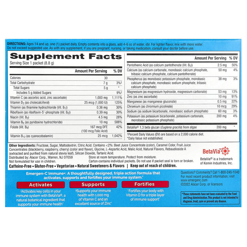 Lưu ý: các sản phẩm của Emergen-C không phải là thuốc và không có tác dụng thay thế thuốc chữa bệnh