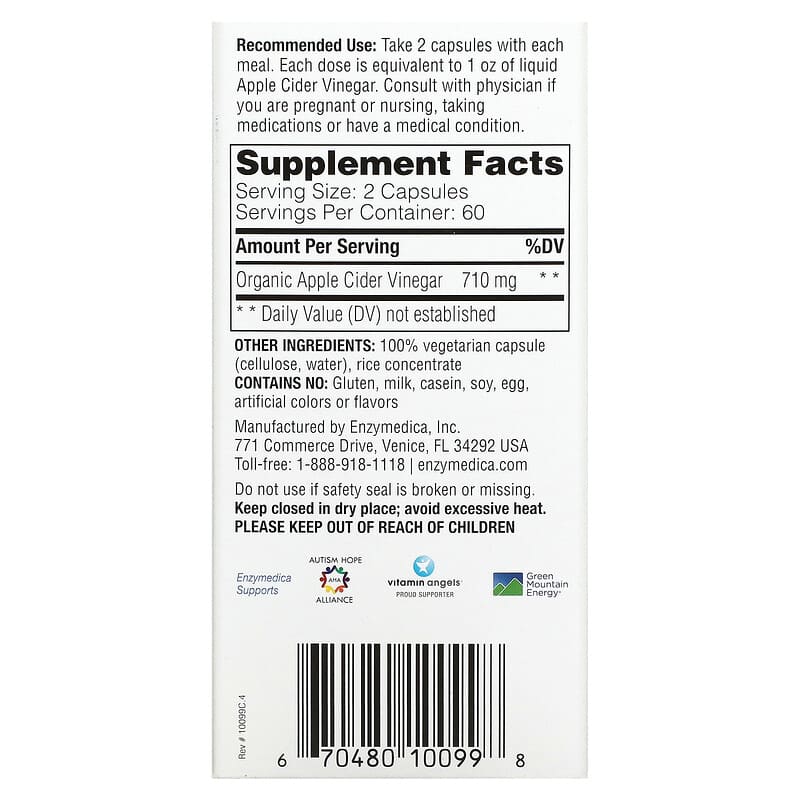 Thành phần của Enzymedica Apple Cider Vinegar