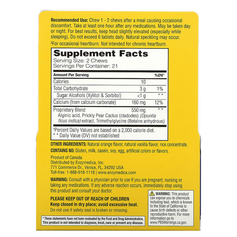 Giới thiệu sản phẩm Enzymedica Heartburn Soothe Vanilla-Orange 42 Relief Chews