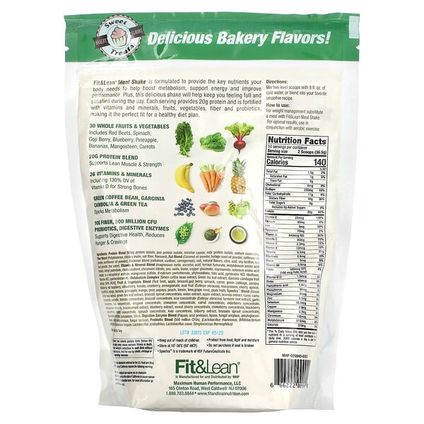 Sản phẩm Fit & Lean Meal Shake hương dâu tây, dinh dưỡng hoàn chỉnh, hỗ trợ thể hình, nhập khẩu chính hãng từ Mỹ, 0,8 lbs (365 g)., UPC: 666222009940