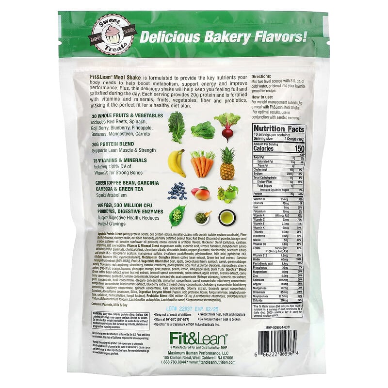 Fit & Lean Meal Shake chứa một công thức dinh dưỡng phong phú bao gồm: