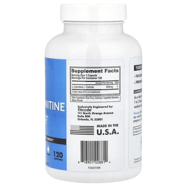 Thông tin sản phẩm fitcode, L-Carnitine, Extra Strength, 500 mg, 120 viên