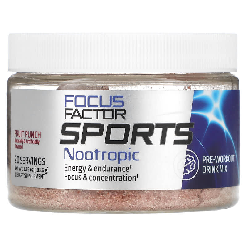 Giới thiệu Focus Factor Sports Nootropic Pre-workout Drink Mix vị Trái Cây Punch 3.65 oz (103.6 g)