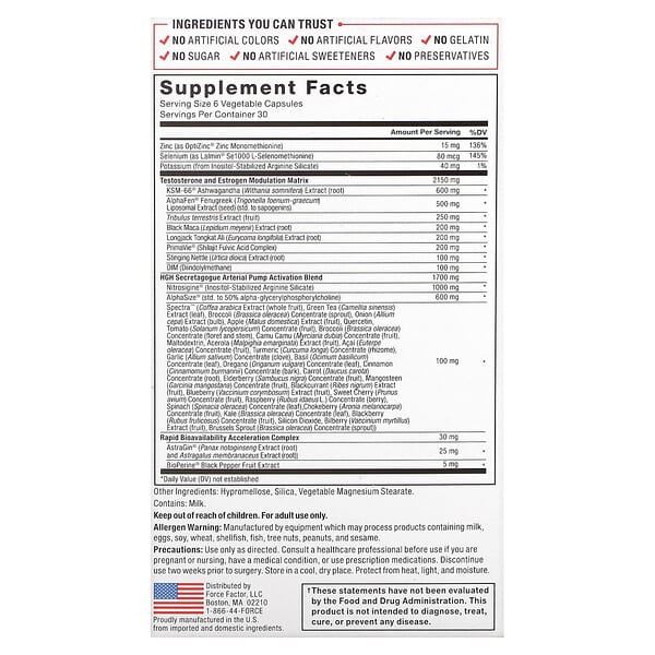 Thông tin sản phẩm Force Factor, Alpha King Immortal, 180 viên