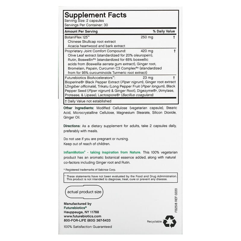 Giới thiệu về sản phẩm Futurebiotics InflamMotion Joint Inflammation Complex 60 Vegetarian Capsules