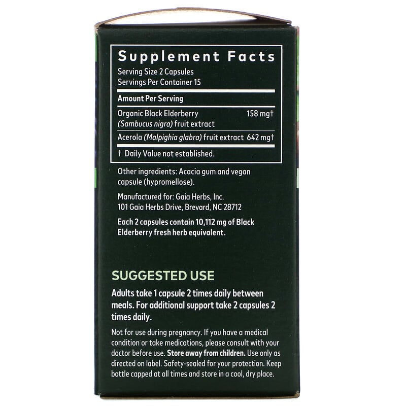 Giới thiệu sản phẩm Gaia Herbs Black Elderberry with Acerola Fruit 30 Vegan Capsules