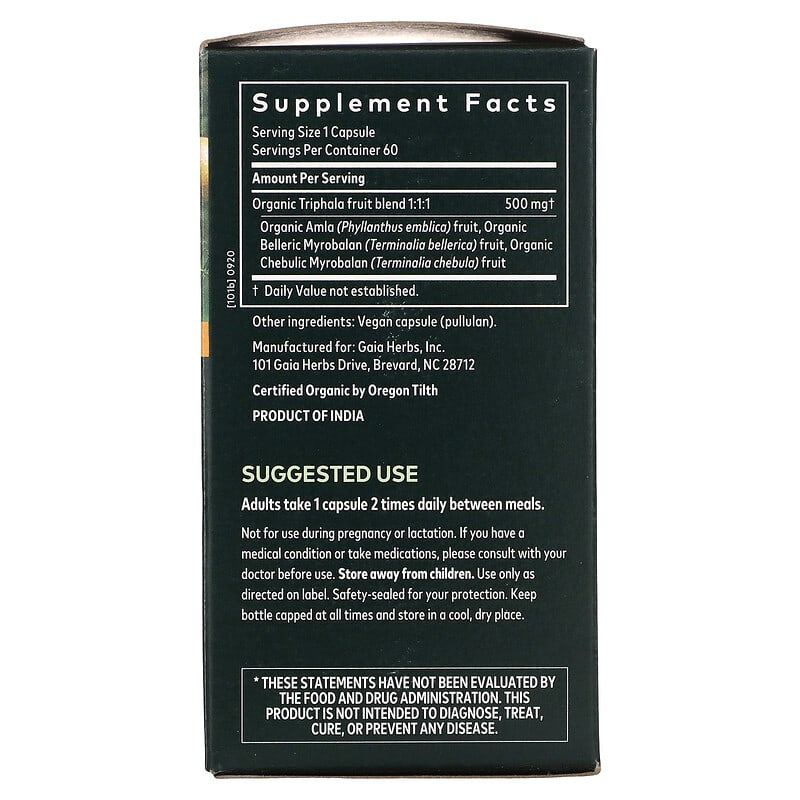 Gaia Herbs Triphala Fruit 60 Vegan Capsules hỗ trợ tiêu hóa khỏe mạnh tăng cường miễn dịch viên nang chay an toàn chất lượng cao 751063145923
