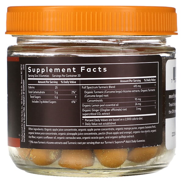Gaia Herbs, Turmeric Supreme, Extra Strength chứa các thành phần tự nhiên được chứng nhận hữu cơ, bao gồm: