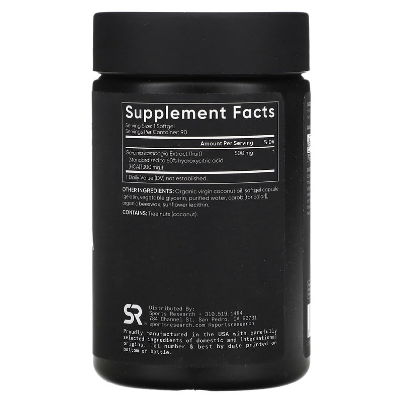 Garcinia Cambogia Sports Research với Dầu Dừa 500mg hỗ trợ giảm cân hiệu quả, tăng cường sức khỏe. 90 viên cho bạn sức bền tối ưu., UPC 023249000914