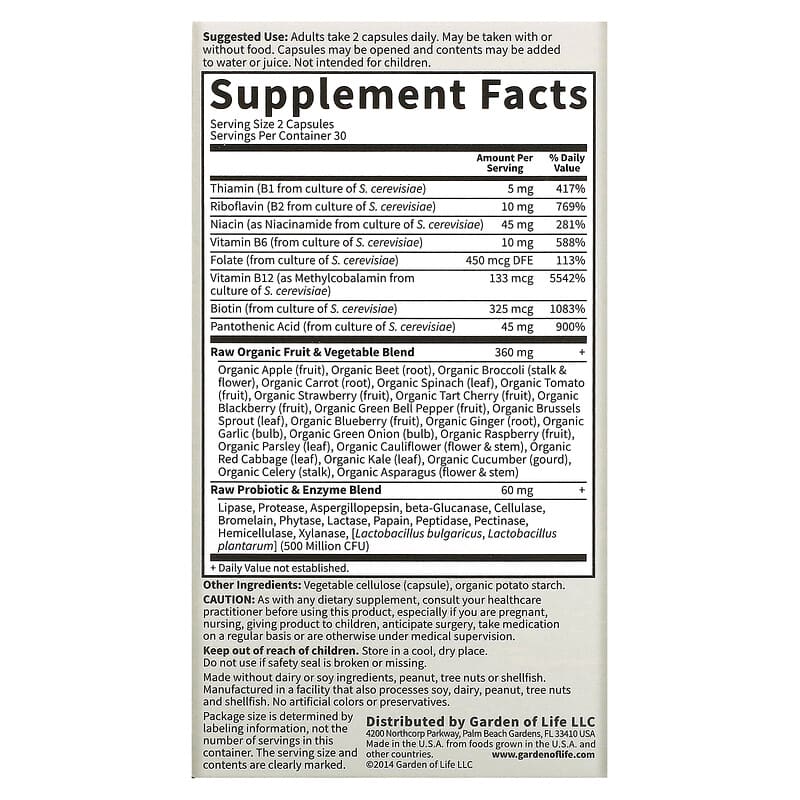 Thành phần của Garden of Life Vitamin Code RAW B-Complex