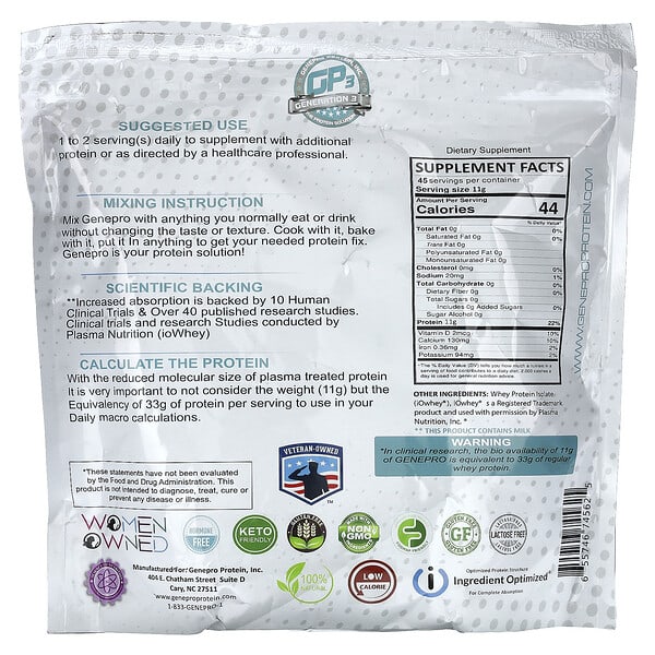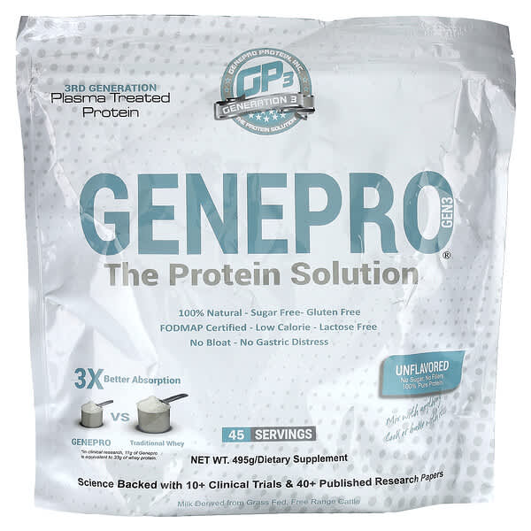 Thông tin sản phẩm GENEPRO, The Protein Solution, không mùi vị, 495 g
