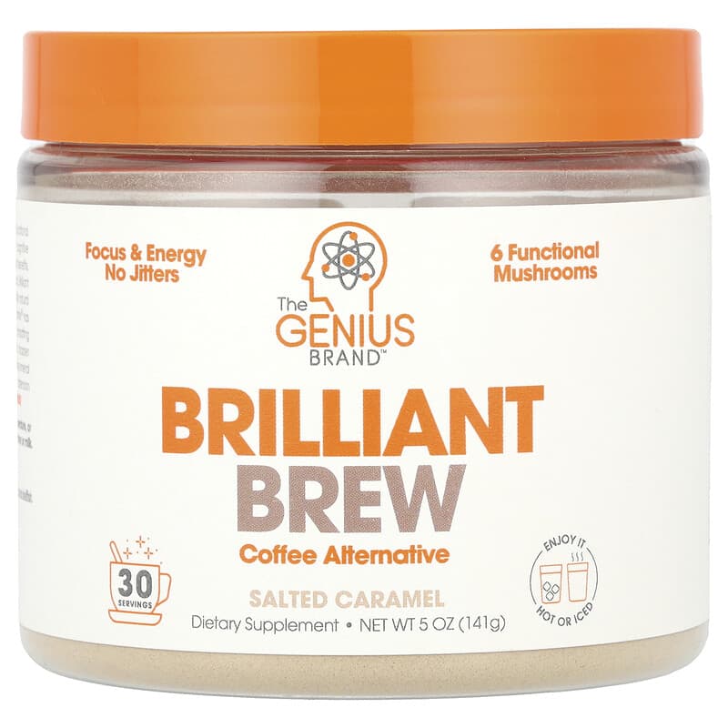 Giới thiệu sản phẩm The Genius Brand Brilliant Brew Coffee Alternative Salted Caramel 5 oz (141 g)