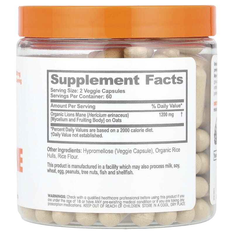 Organic Lions Mane (Hericium erinaceus)[Mycelium and Fruiting Body] on Oats | 1200 mg | † |
