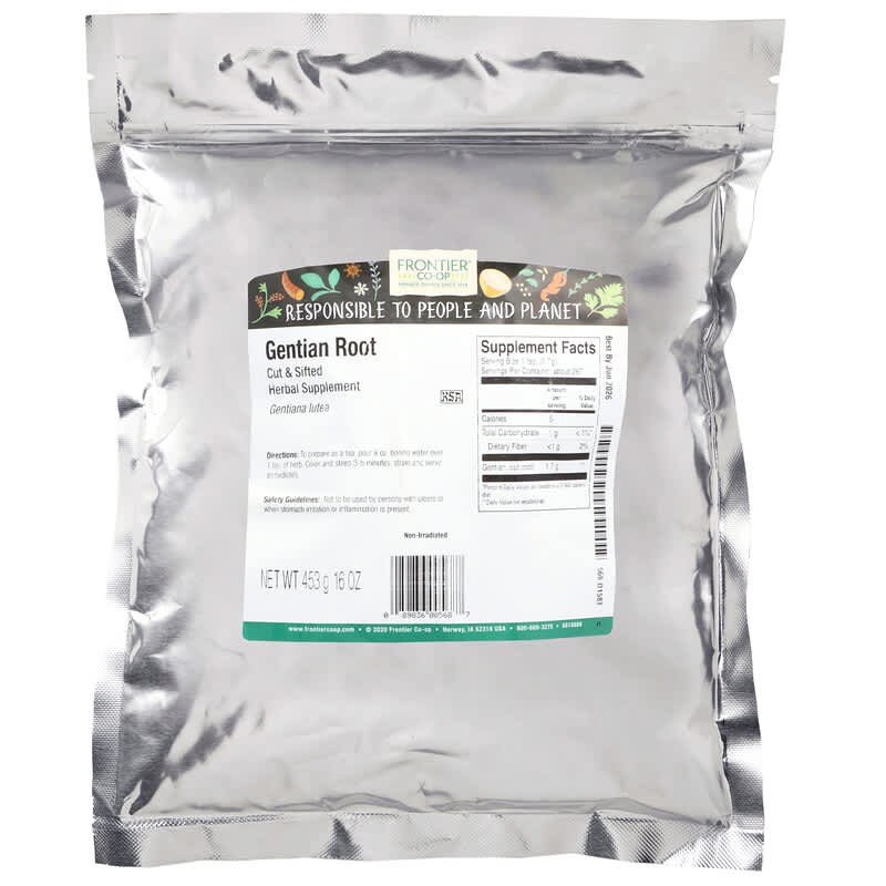 Rễ Gentian Frontier Co-op 453g hỗ trợ tiêu hóa, tăng cường sức khỏe, tự nhiên 100%, chất lượng cao, dùng trong trà và nấu ăn., UPC 089836005687