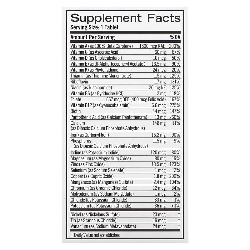 Geritol Multivitamin/Multimineral chứa 26 vitamin và khoáng chất thiết yếu. Mỗi viên thuốc bao gồm: