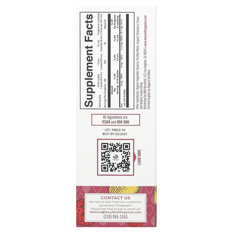 Giới thiệu sản phẩm MaryRuth’s Organic Ionic Zinc Liquid Drops Strawberry Lemon 4 fl oz (120 ml)