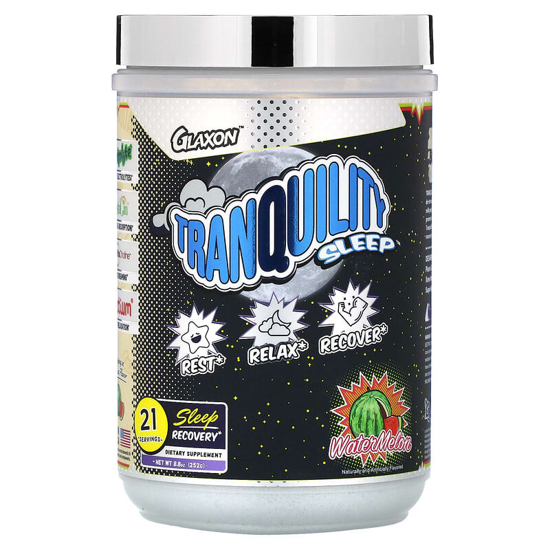 Glaxon Tranquility Sleep Dưa Hấu 252g hỗ trợ giấc ngủ sâu, thư giãn, giảm căng thẳng, hương vị dưa hấu thơm ngon., UPC 850027534046