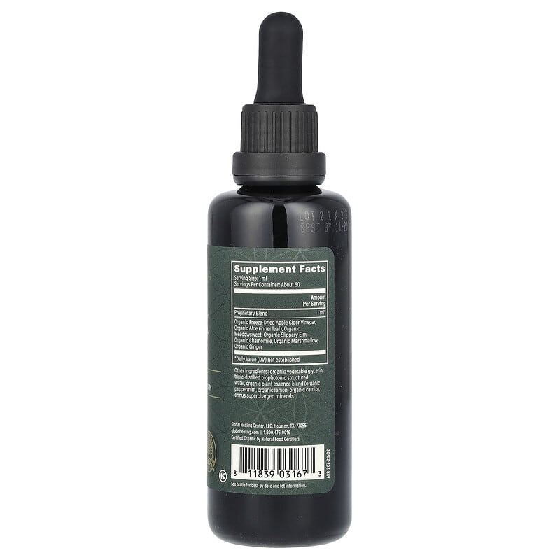 Giảm trào ngược axit hiệu quả với Chiết Xuất Thảo Dược Tự Nhiên Global Healing 59,2 ml, an toàn và tự nhiên., UPC 811839031673