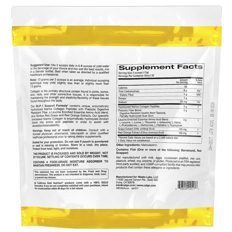 Công Thức Hỗ Trợ GLP-1 California Gold Nutrition giúp kiểm soát cân nặng, không mùi vị, dễ sử dụng, 410g., UPC 898220025176