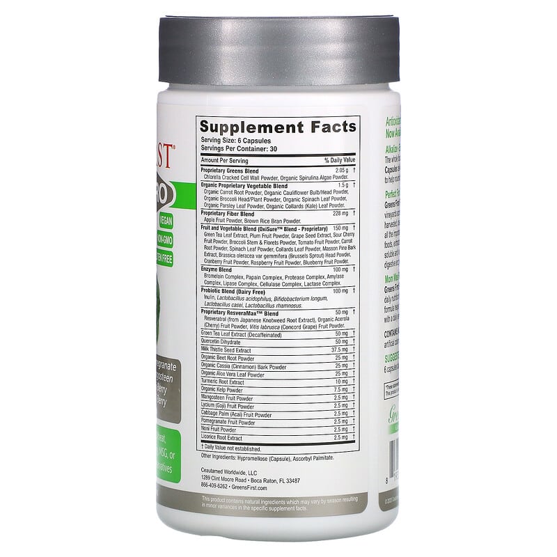Thực phẩm bổ sung Greens First PRO 180 viên hỗ trợ chống oxy hóa, tăng cường sức khỏe với phytonutrient, superfood từ hãng Greens First 819354001089