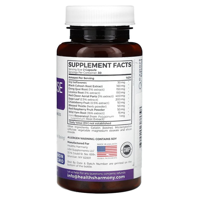 Viên uống hỗ trợ giảm triệu chứng mãn kinh Healths Harmony 60 viên, giúp cân bằng hormone, cải thiện sức khỏe phụ nữ., UPC 642415388658