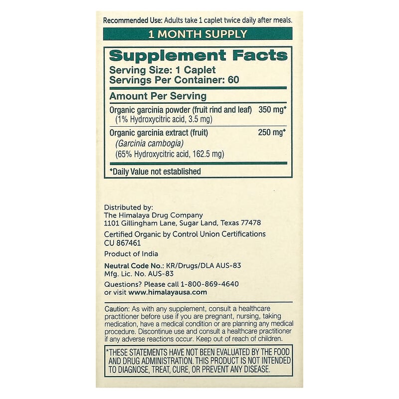 Giới thiệu sản phẩm Himalaya Organic Garcinia 2.300 mg 60 Caplets