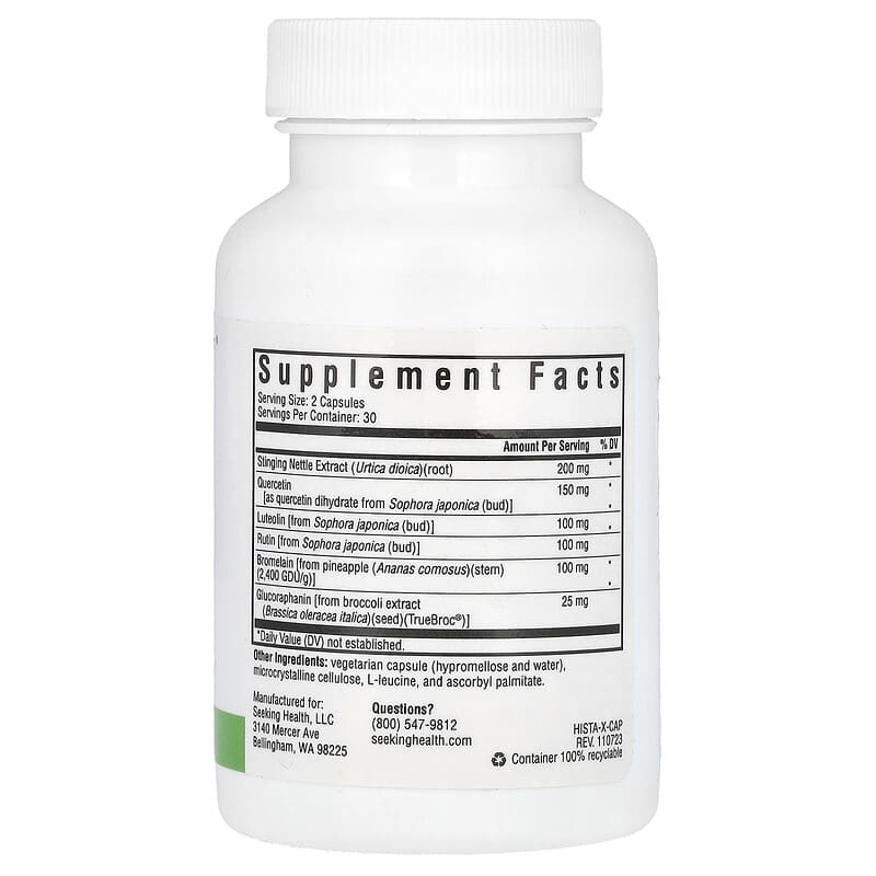 Viên uống HistaminX 60 viên chay Seeking Health hỗ trợ giảm triệu chứng dị ứng, an toàn cho sức khỏe, phù hợp cho người ăn chay., UPC 810007520469